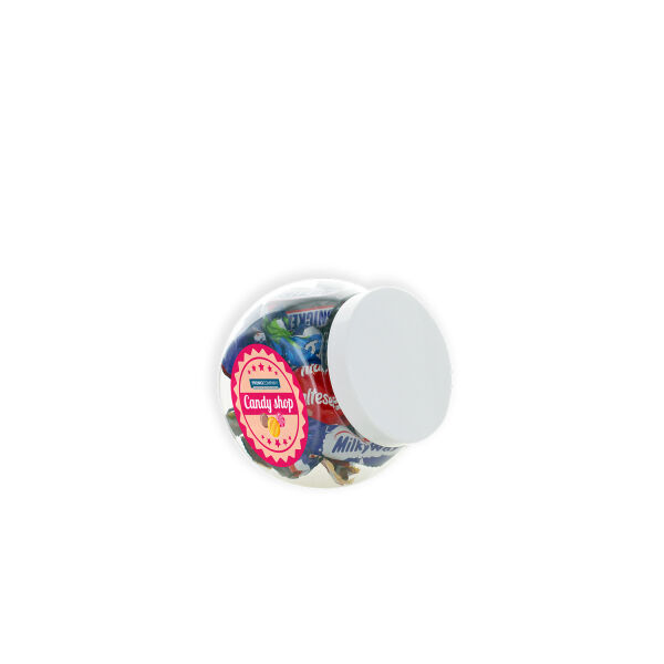 Kunststof snoeppot Amsterdam 450ml met autodrop. Prijzen zijn inclusief stickers aan beide zijden.