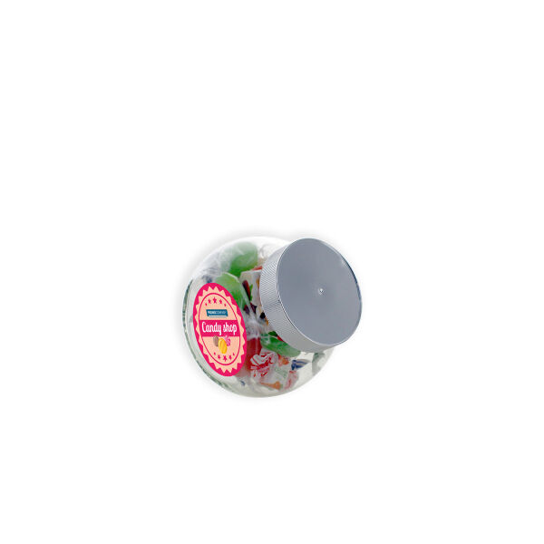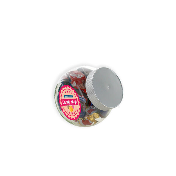 Glazen snoeppot Den Haag 395ml met autodrop. Prijzen zijn inclusief stickers aan beide zijden.
